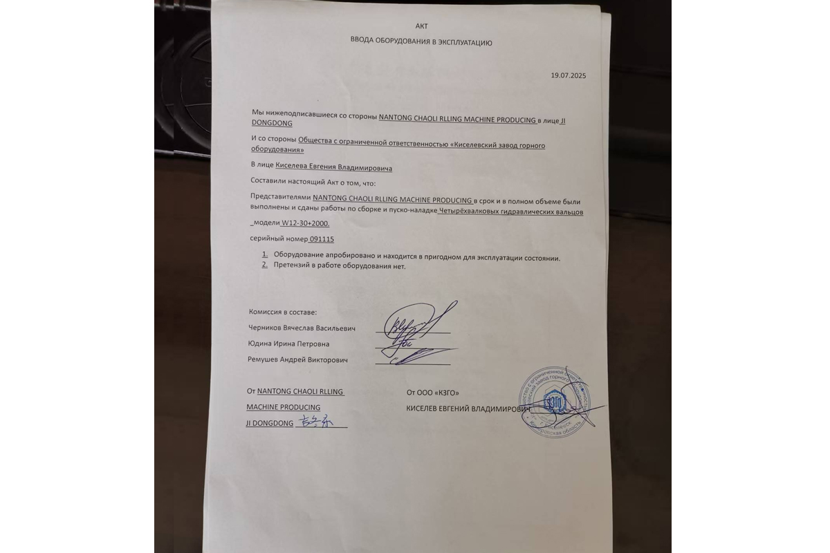 近日,我公司自主研發(fā)制造的一批卷板機設備順利出口到了俄羅斯。為確保卷板機設備能夠順利投產(chǎn),公司售后服務部工程師團隊專程為客戶提供了全方位的設備調(diào)試、操作培訓及技術指導服務。